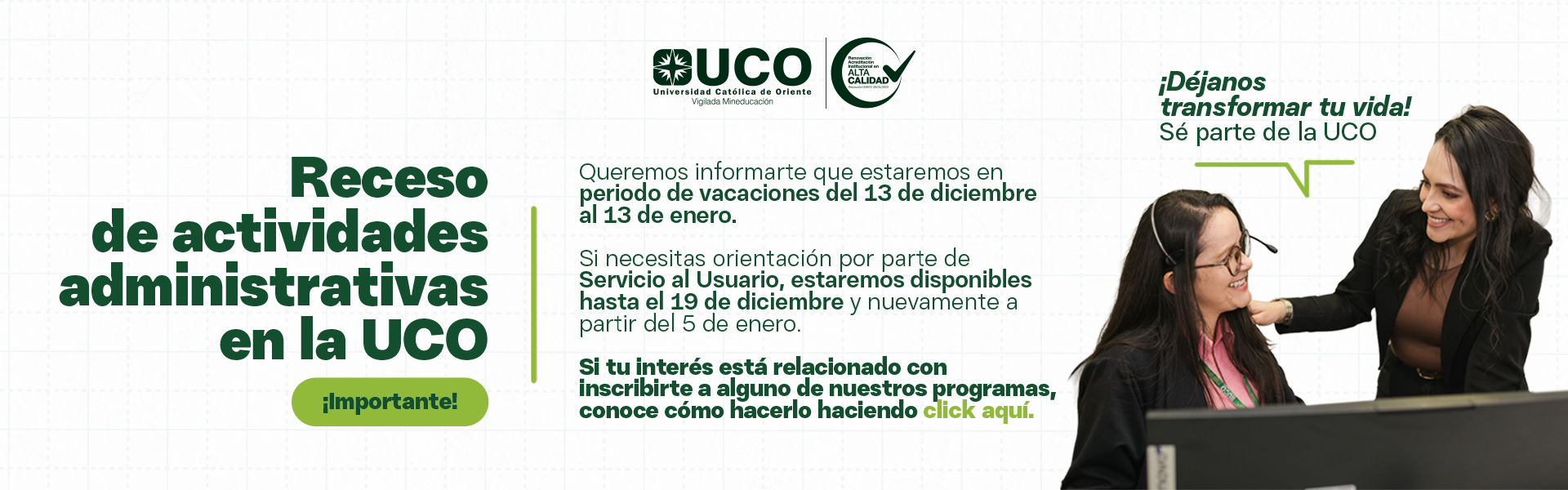 Impulsamos tu crecimiento académico y personal con Programas de Alta Calidad, formación integral y un fuerte compromiso social, adaptados a las demandas del mundo actual.
